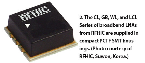 韓國著名射頻微波模塊廠商RFHIC公司,已經開始使用PCTF技術生產其低噪聲放大器、增益模塊、寬帶低噪聲放大器(包括其CL、GB、WL、LCL系列產品)(圖2)。這些產品體積小(10.16×10.16X 4 mm)、價格低適于大批量生產。得益于PCTF技術的散熱特性和可靠性,該公司的寬帶低噪聲放大器產品能提供有益的高增益、低噪聲性能。對于這些應用,PCTF技術具有承受高溫、散熱性好、易于制造以及可靠性高等優點。
