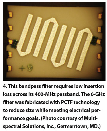 在商用領域,射頻識別RFID(RF identification)正逐步普及,零售業和工業用戶正在不斷開發這種短距離無線技術的新應用。Multispectral公司提出了一種結合RFID和UWB的新技術,該公司為其一款RFID讀卡器產品設計了一個寬帶濾波器,該濾波器采用PCTF技術,該濾波器在400MHz的帶寬內具有極低的插損(圖4)。采用基于厚膜技術的PCTF封裝,該產品達到了比傳統微波PCB技術更低的插損,已經更高的可重復性。而且濾波器的體積也比傳統方法減小了很多,同時還提高了可靠性。另外,PCTF封裝有效的減小了互耦干擾。