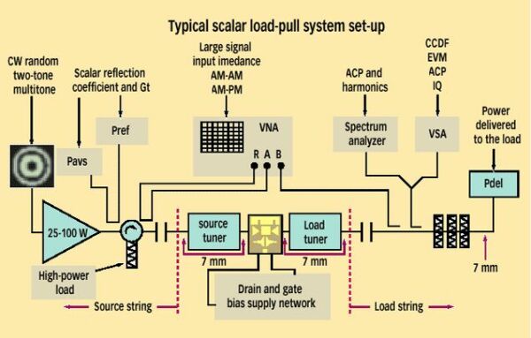 負載拉移測量技術在最近幾年愈來愈受歡迎,該技術通常被用來測量RF功率放大器的參數,比如峰值輸出功率、增益,以及在器件參考平面出現的各種復雜負載條件下的效率。在同一測量環境中采用多種復雜的調制信號也越來越普遍。對大功率RF半導體生產商而言,準確表征產品的特性還存在困難,與此同時開發這類器件還必須采用大的外圍設備。這類設備一般為60mm,終端阻抗低于0.5Ω,品質因數(Q)在8至10之間。