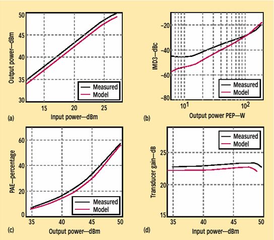 開發這些封裝晶體管的非線性電熱模型,使最復雜的測量和仿真技術成為可能。成功的建模還必須解決一些問題,包括匹配網絡中組成部分之間以及邦定線陣列之間的電磁交互作用、熱管理、器件熱模型與電模型的自相容集成,以及建立晶體管本身的非線性模型等。
