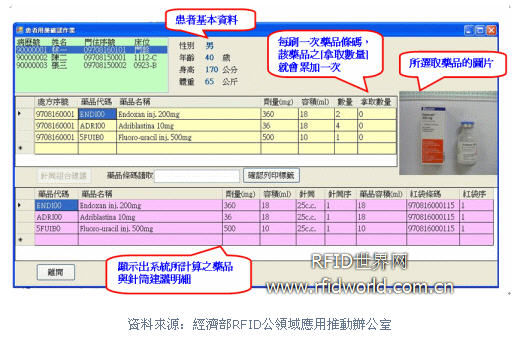 剛與醫院藥師討論化療輸注液的調制,想以RFID來進行針筒管控,并結合藥品條碼進行用藥比對與確認時,藥師都認為非常必要,除了可降低拿錯藥的比例,還可落實醫事人員遵循標準作業流程進行配藥與給藥的動作。而且運用RFID自動擷取標簽資料,自動完成藥品使用與針筒調制登錄作業,更可節省大量人工的填寫與簽核作業。
