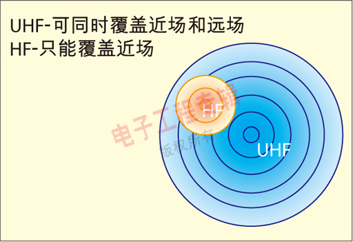 圖1:UHF Gen 2和HF覆蓋區域的區別。