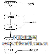 廢舊家電回收信息管理系統采用客戶端/服務器(C/S)和瀏覽器/服務器(B/S)相結合體系結構,結合RFID相關技術,使用C++、J2EE等編程語言進行開發,數據庫采用Oracle9i數據庫。B/S結構主要采用J2EE架構開發,體系結構如圖5所示。C/S結構系統采用c++開發,用來實現生產、銷售、回收等環節對RFID標簽的信息采集功能。數據采集系統根據用戶權限進行分級管理,根據用戶所屬的角色類別,顯示用戶可以看到的功能界面。數據采集系統共有生產下線數據采集、生產入庫信息采集、生產出庫信息采集、銷售進貨信息采集、銷售信息采集、銷售監控、商品防偽、商品關注度、回收信息采集、處理信息采集、數據處理、權限配 置l2個模塊組成。