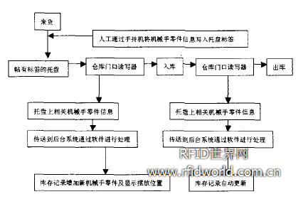 圖3 RFID技術在機械手零件倉儲管理的應用流程