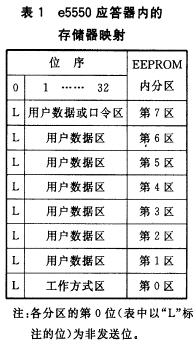 (4) 發射機應答器上帶有EEPROM,共分8個(存儲)區,每區有33個位,故總共有264個位(見表1)。