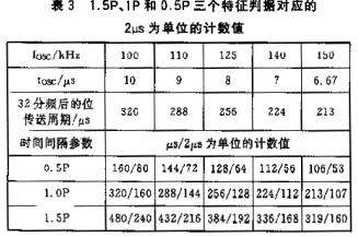 由上可知,只要1.5P、1P和0.5P的間期是不重疊的。根據采用100~150kHz和110~140kHz兩組數據的對比可見,使用后者更合適。另一個辦法是:通過試驗,找到合適的間期指數,即可依此作為電平躍變的判別閾。這樣,在確保識別能力的前提下,又從工藝上降低了對于振蕩回路的頻率精度要求。