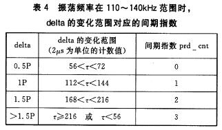 根據上述振蕩頻率的變化范圍110~140kHz,將編碼變化的不同間隔轉化成相應的間期指數,具體如表4所列。