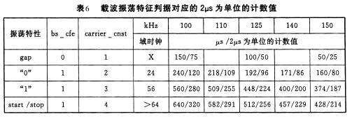 根據上述的載波振蕩特性,利用carriercnst參數進行界定(見表6),讀操作即不難實現。讀寫操作過程中,均使用了2μs為單位的計數值作為定時單位,目的是要使用MCS-51系列的微控制器的定時器。