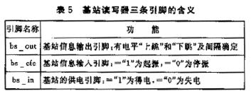 基站讀寫器上有三個引腳:bsout、bscfe和bsin,它們的含義見表5。