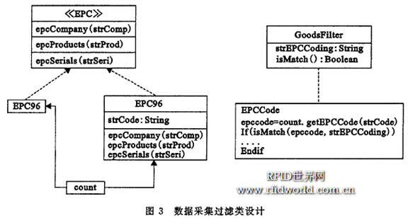 基于EPC數據采集,建立起業務規則管理,對粘貼帶有標簽物品的進出事件做出判斷和響應,后臺數據處理系統對采集的數據有針對性地選擇有真實業務含義的抽象事件來進行分類處理,用戶可以對RFID采集的篩選條件和處理服務進行選擇與配置,從而快速實現現有應用系統中與RFID技術及管理方法的有效整合.