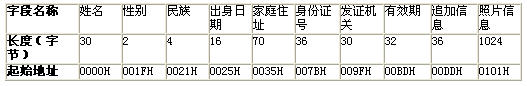 公安部已經嚴格規定了二代證的信息儲存格式如表1所示: