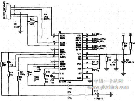整個讀卡器部分有磁頭,譯碼芯片和以ARM 主處理器為核心的CUP模塊。選用的ARM芯片一東芯SEP3203是東南大學自主研制的一款以ARM7TDMI為IP內核的32位RISC芯片,工作主頻可以達到75MHz,可以滿足刷卡器中斷的上來的頻率,該處理器有豐富的I/O資源和中斷口資源和其他的接口資源。刷卡得到的數據可以高效率的通過ARM 芯片處理,并且可以通過其他接口如串行口等將數據導出,或者是將數據保存到FLASH中。CUP模塊由SEP3203,FLSAH,SDRAM 和相應的外圍電路組成。