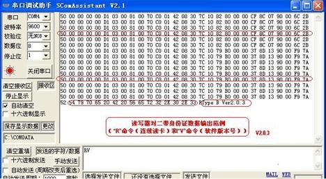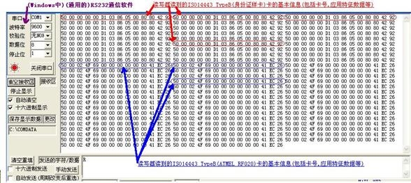 讀寫器讀取ISO Type B卡片后將把卡片的數據通過RS232的方式送給后臺的PC計算機或數據控制器等。如下所示為讀寫器先后讀取兩張ISO Type B卡片的情況。(注意:數據為16進制顯示)