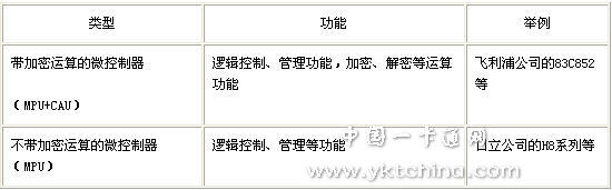 IC卡經常使用的微控制器芯片種類及特性見表2。