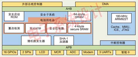 Zilog公司開發的基于32位ARM922T的Zatara微控制器集成了保證微控制器安全所要求的大部分功能,包括安全啟動ROM和篡改檢測支持(圖1)。更值得一提的是它帶有40kB的安全RAM,如果篡改檢測電路受到攻擊,這部分RAM將歸零。