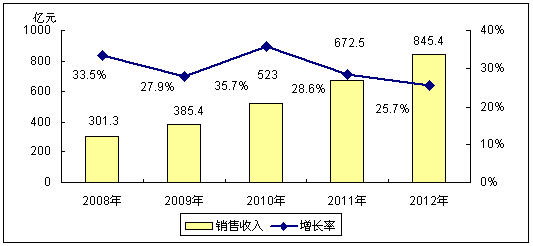綜合這些因素,在國內市場需求快速擴大和企業競爭力不斷提升的帶動下,作為集成電路產業的龍頭,集成電路設計業仍將是未來國內集成電路產業中增長最快的領域,預計其今后5年的年均復合增長率將達到30.2%。2012年,國內設計業規模將達到845.4億元,其在國內集成電路產業銷售收入中所占比重將由2007年的18%的提高至23.6%。