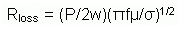 環形天線的損耗電阻(忽略其介質損耗)用環形天線周長(P)、線寬(w)、磁導率(pi= 400πnH/米)、電導率(σ,5.8 x 107Ω/米,銅的典型值)、頻率(f)表示為: