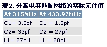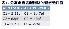 表中的C2電容值不包括大約2pf的PA輸出端和PCB雜散電容的電容值。在本文中,此2pf電容在所有匹配計算中加入C2值中。