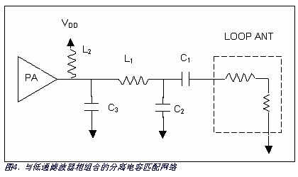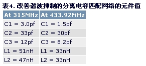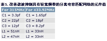 諧波抑制很重要時,最好在匹配網絡中多加兩個器件組成低通濾波器,連接到匹配網絡上。本應用筆記采用分離電容和低通濾波網絡相組合,與簡單的分離電容匹配網絡相比能夠改善大約20dB的諧波抑制。