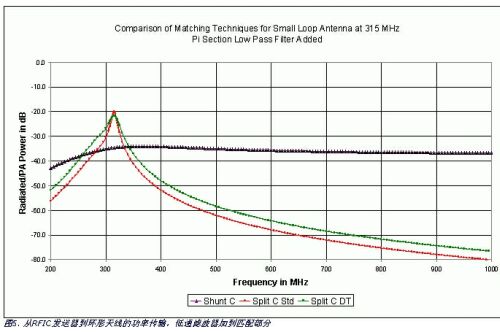在315MHz,此電路傳輸功率減小到-22dB,但在5%元件容差內,損耗變化降到3dB。