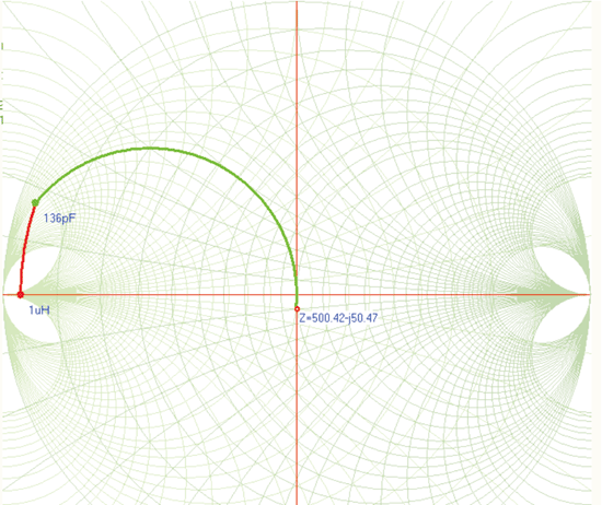 ① 設定特性阻抗Z。=500W,輸入信號頻率為13.56MHz;