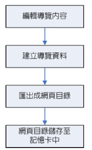 本子系統主要為一可提供導覽資料管理之內容管理系統(CMS),透過內容管理系統將導覽之文字、語音、圖像等內容進行管理,并將網頁層級編排予以設定、輸入。提供一般導覽設備透過有線、無線網路進行網頁瀏覽,并利用系統所提供將整個網頁目錄轉換匯出之功能,將CMS 中網頁內容匯出到可于PDA 中讀取之記憶卡中,提供RFID PDA 導覽使用。