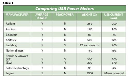 功率計提供峰值功率測量更加通用,那些僅提供平均功率的一般花費較少,如果是USB儀器的話,從主機上獲取的功率更少。這種更低的功率消耗延長了電池的壽命,但卻仍然提供了精確測量能力(見表1)。