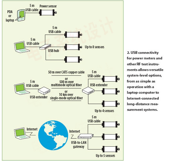 微波和RF測量設備的特點是簡化依靠通用串行總線(USB)與外部個人電腦(PC)或網絡的遠程連接。為了測試RF功率,這種遠程測量能力可以為從技術員到工程師的各種用戶提供廣泛應用。