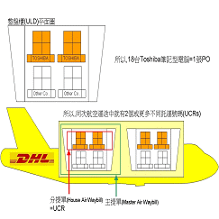 計劃內將貨物裝載包裝分成三個層級:包裝箱(Carton level 1)編號、棧板(Pallet level 2)編號、ULD(level 3)編號。貨物裝載實體范例說明-