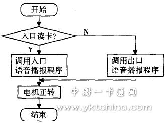 控制閘桿機的起落即是控制閘桿機的直流電機的正反轉,通過單片機控制口輸出高低電平配合繼電器工作,直流電機電機兩端加正反電壓可以實現正反轉。對于時間的記錄,這里選用DS1302日歷芯片,DS1302可以對年、月、日、周、時、分、秒進行記錄.可接入后備電源,在主電源關閉的情況下也能始終保持連續工作,單片機SPCE061A可以隨時讀取當前的時間。與上位機的通信利用SPCE061A的通用異步串行通信模塊(UART),它提供了一個全雙工標準接口,借助于IOB口的特殊功能和UART IRQ中斷實現與上位機配置的RS一232串行通信接口COM鏈接,實現了數據的及時傳輸。另外,語音提示部分利用SPCE061A的語音處理優勢。利用 SPCE061A的語音壓縮算法庫和內置的DAC等,即可實現清晰的語音播報功能,無需外加語音芯片。