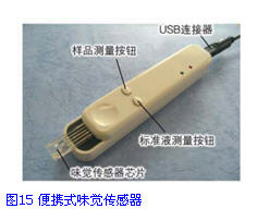 該公司還開發了多種味覺傳感器陣列化集成芯片,可以通過USB連接電腦使用(見圖15)。該芯片大小為40mm × 10mm × 1mm,可應用到便攜式味覺傳感器或嵌入電子產品中,使設備可根據自己的喜好自動進行烹調。