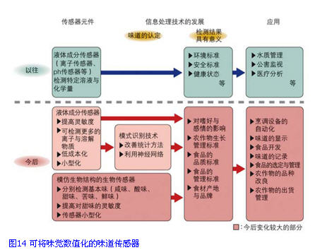 此外,除了可判斷基本味道,還可檢測食品界已習慣使用的特殊味道的味覺傳感器也已出現,如可檢測出啤酒苦、麻澀、有機苦、澀味、極鮮味等共計10 種味道。這種新產品可以將消費者喜歡的味道與食品的品牌進行匹配,客觀地找出消費者所要求的味道。