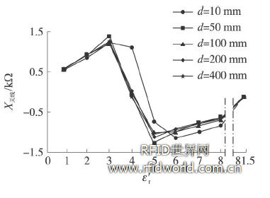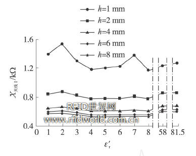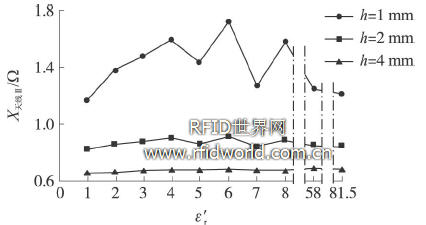圖5 ε′r對天線電抗X天線的影響