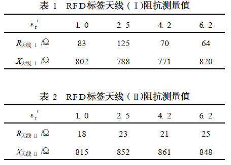 而ε′r對標簽天線阻抗的影響非常大,在某些介電常數值上,天線的電阻可以達到3 kΩ,電抗達到1. 5 kΩ。而 RFID 標簽天線阻抗受包裝箱內物品介電常數的影響,阻抗值波動十分劇烈。因此,為了與常見的 RFID 標簽芯片相匹配,需要針對特定產品訂制包裝箱的 RFID 標簽天線。但現代社會中商品不下數十萬種,為每種產品訂制不同的 RFID 標簽天線的工作量太浩繁,嚴重阻礙RFID 技術在物流領域的推廣應用。因此,研制對物品介電常數不敏感的通用 RFID 標簽天線,是 RFID 技術推廣應用的關鍵突破點。
