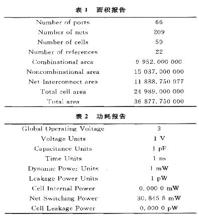 本文采用Synopsys工具,結合中芯國際的0.35μm工藝庫,可以得到本文所設計芯片的面積和功耗如表1、表2所示: