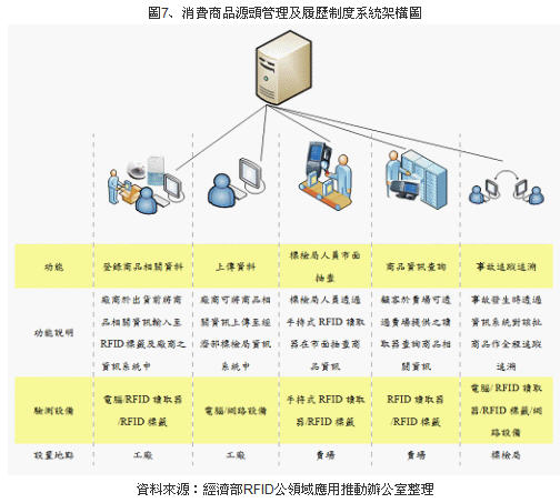圖1、“消費商品源頭管理及履歷制度之 RFID 應用概念驗證”執行架構圖