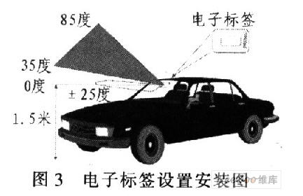 (1)電子標簽(Tag)由耦合元件及其他器件組成,每個標簽具有唯一的電子編碼,安裝在車輛上標識車輛信息,其中保存有約定格式的電子數據;當受到無線電射頻信號照射時,反射回攜帶有數字字母編碼信息的無線電射頻信號,供閱讀器處理識別。其工作頻率一般在915 MHz以上,分為有源和無源。