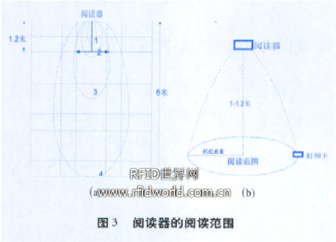由于火車下部安裝條件所限,火車下部距離安裝射頻卡的軌面的距離約為1 m-1.2 m左右,而閱讀器能夠有效讀卡的范圍為圖3(a)所示,當對閱讀器設置不同的讀卡范圍時,對應不同的橢圓曲線。
