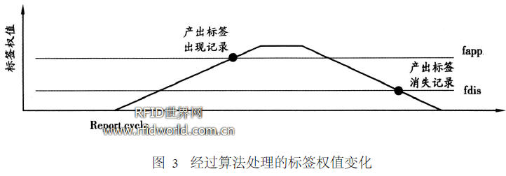 8) 標簽權值小于等于fdis,且detectS tatus =true,則觸發標簽消失事件, 產生一條標簽消失的記錄. 然后將detectS tatus置為false.