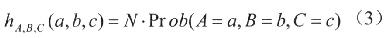 其中:A、B、C分別表示所有像素中三基色(RGB)所占的比例。N表示圖像像素數。所得到RGB圖像(又稱真彩色圖像)是以m×n×3的3D矩陣的方式存儲,分別定義了m×n圖像的每個像素中所包含三基色各自的強度。因此RGB直方圖是對“色階一像素數”的歸一化統計結果。