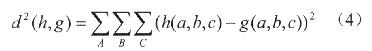 其中:h和g分別代表兩幅圖像的顏色直方圖。