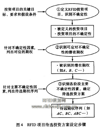 在計算了各待選投資方案中RFID項目的真實價值之后,就可選擇滿意的方案開始投資,如果沒有得到滿意的項目價值,可返回模塊2,對投資場景進行修訂和再設計,直至最終找到合適的投資路徑,得到滿意的項目價值。