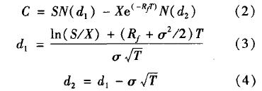 為標的資產價值波動的方差;N(·)為累積正態分布函數;e=2.718 3。
