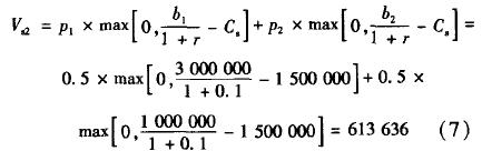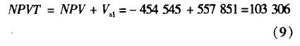 將第二年年初第二期項目的價值折現到第一年年初,得到第一年年初考慮了管理柔性的第二期項目的價值Vsl為: