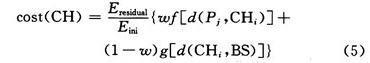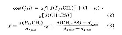 階段3:成簇階段簇頭向網絡所有節點廣播自己成為簇頭的消息HEAD_AD,內容為簇頭節點的標識及該節點與基站的距離。普通節點接收到此消息后選擇一個通信代價cost(CH)最小的聚類加入,并發送消息JOIN_REQ。通信代價表達式為: