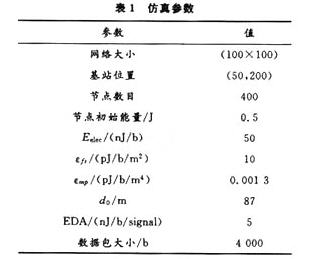 仿真中,使用Matlab作為仿真平臺,采用與文獻[3]相同的能量消耗模型。仿真參數如表1所示。