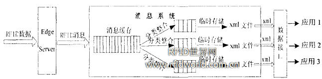 而RFID中間件將企業級中間件技術延伸到RFID領域,是RFID產業鏈的核心技術。由于RFID中間件屏蔽了RFID設備的多樣性和復雜性,能夠為后臺業務系統提供強大的支稱,從而可以驅動更為廣泛的、更為豐富的RFID應用。具體地講,RFID中間件是一種面向消息的中間件(Message—Oriented Middleware,MOM),RFID相關數據(Information)是以消息(Message)的形式,從一個程序以異步(Asynchronous)的方式傳送到另一個或多個程序。RFID中間件包含的功能不僅是傳遞(Passing)信息,還包括安全性、錯誤恢復、解譯數據、數據緩存、數據廣播、定位網絡資源等高級服務。