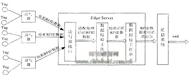 另外,UCLAWINMEC RFID實驗室所設計的RFID中間件是在分布式架構上構建的web服務,基于XML和SOAP,包含了簡單的捕獲、平滑、過濾、路由、聚合等功能;Bob WEB Violino構想性地給出了在企業內部將web Services技術應用于RFID系統的例子,這個例子中指出零售部門可以在所到物品的信息與供應部門使用RFID技術所核算的內容不一致的情況下,通過Web Services接口詢問供應部門并進行核對;臺灣資策會研究所提出了基于SOA思想的RFID中間件分層架構,并將其基礎架構層分為Edge Server和數據操作軟件兩層。