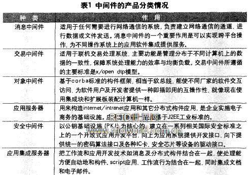 表1中間件的產品分類情況