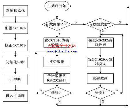 在設計軟件時,需要注意各狀態轉換的時延。無線通信終端在發送數據前需要將電路置于發射狀態;接收模式轉換成發射模式的轉換時間至少為0.5ms;可以發送任意長度的數據;發射模式轉換成接收模式的轉換時間至少為3ms。